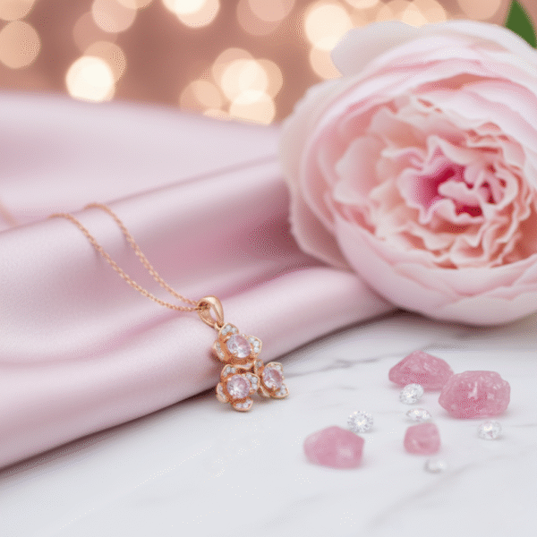 Embrace elegance and charm with the Blush Blossom Rose Gold Pendant Necklace, a delicate piece that adds a soft romantic glow to any look. Featuring three flower-shaped pendants adorned with sparkling pink crystals and surrounded by shimmering cubic zirconia accents, this necklace captures the essence of beauty and grace.